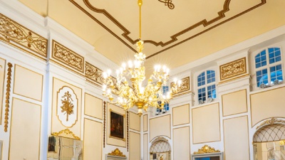 Seit Mitte 2023 war der größte Saal der Landbarockanlage eingerüstet. Die maroden Dachbalken waren nicht mehr tragfähig. Nach erfolgreicher Sanierung öffnet der Spiegelsaal am 1. Advent wieder für ein erstes Konzert.