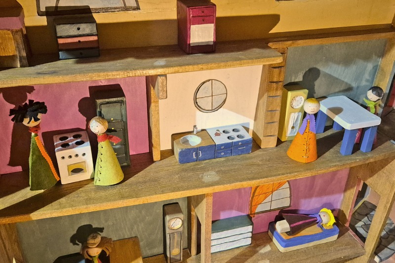 Lustig geht bald auch im Erdkeller zu! Dort wurde eine kleine Puppenhausstadt eingerichtet, wo die Kleinen mit selbst gebastelten Holzpüppchen nach Herzenslust ins Puppenspiel einsteigen können. Die niedlichen Murmelkopf-Holzpuppen stehen als käufliche Bastelsets bereit. Jedes Set besteht aus einer Holzmurmel (Kopf), einem Holzstab, einem Kleidchen plus Schal aus Schafwollfilz und etwas Basteldraht. Die Kinder können die Köpfe ihrer Püppchen individuell bemalen und sich in der kreativen Schnürung der bunten Filzkleidchen ausleben. Der Wollfilz ist natürlich nachhaltig, stammt garantiert von glücklichen Schafen alter Schafrassen und zu 100 % aus deutscher Weidehaltung.