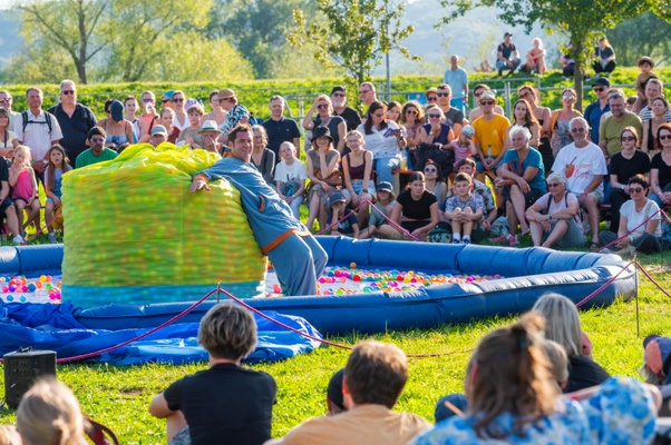 Doch nicht nur kulinarische Höhepunkte sorgten für freudige Stimmung, vor allem die beeindruckende Bühnenpräsenz der internationalen Künstler begeisterte das Publikum. Mit ihrer Leidenschaft und ihrem Können verzauberten sie die Zuschauer und boten ein abwechslungsreiches Programm, das zum Mitsingen, Tanzen und Staunen einlud und die Herzen höher schlagen ließ. Ein besonderes Highlight war u.a. die Show „Wonderland“ von El Goma (ARG), die das Publikum in eine fantastische Welt entführte. In dieser Show entdeckte ein gestrandeter Charakter mit Hilfe und Beteilung des Publikums neue Grenzgebiete. Basierend auf einfachen Slapstick-Spielen aus dem vergangenen Jahrhundert und einer naiven Neuinterpretation der heutigen Comedy, verfolgte die Show einen Weg von Einflüssen, die von Pop-Art, magischem Realismus, Poesie, Absurdität bis hin zu Minimalismus reichten.