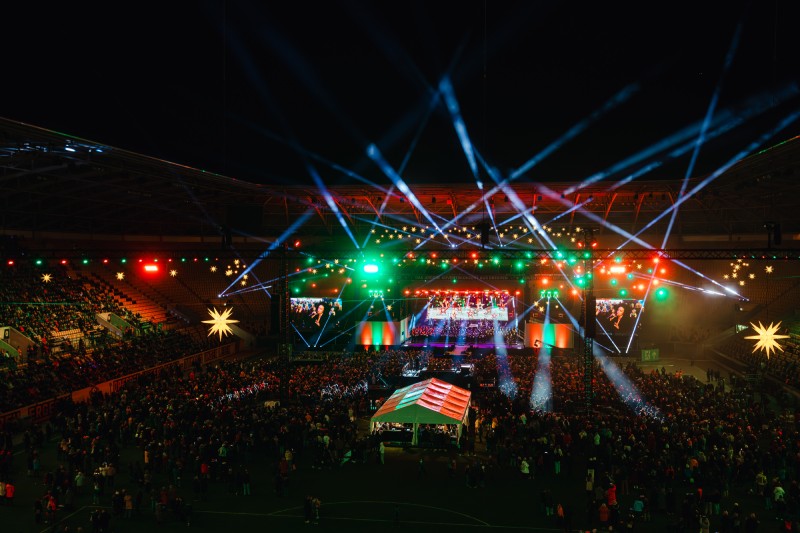 28 Weihnachtslieder, mehr als 250 Künstlerinnen und Künstler und eine 340 Quadratmeter große und über 12 Meter hohe Bühne – das sind nur ein paar der Eckdaten, die die überwältigende Dimension des Großen Adventskonzertes beschreiben. Damit die über 20.000 Zuschauerinnen und Zuschauer ein großartiges Konzert genießen können, ist bereits seit dem 9. Dezember ein großes Team im Rudolf-Harbig-Stadion in Dresden im Einsatz.