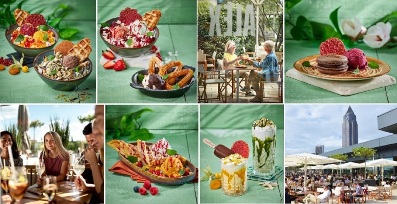 Auch Fans warmer Desserts kommen auf ihre Kosten. Sommerliche Leichtigkeit bringt beispielsweise die „Tutti Frutti Waffel“ auf den Dessertteller, bei der frisch gebackene Waffeln mit Aprikosensorbet, Früchten, Waldfrucht- und Tropicalsoße kombiniert werden. Ein echter Glücklichmacher sind auch die knusprigen „Churros & Eis“, die warme Süße mit kühler Cremigkeit verbinden.