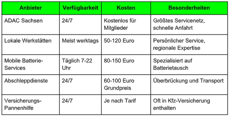 Viele Kfz-Betriebe in Sachsen bieten eigene Pannenhilfe an. Diese Services sind oft günstiger als kommerzielle Anbieter und kennen sich bestens in der Region aus. Mobile Werkstätten bringen das nötige Equipment direkt zum Pannenort und können defekte Batterien sofort austauschen.