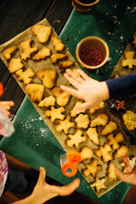 Die Nikolausmanufaktur hält viele Mit-Mach-Angebote für Groß und Klein bereit - bei der Herstellung der Produkte kann zugeschaut und selbst mitgemacht werden. Kinder können bei den Händlern zum Beispiel Engel basteln, sich an der Nähmaschine versuchen, Diamant-Painting probieren, Armbänder fädeln, Tischläufer bedrucken oder eigene Weihnachtskugeln mit Wachsbossiertechnik gestalten. In der Gesindeküche ist außerdem der historische Holzbackofen angeheizt - hier können Butterplätzchen gebacken und nach Herzenslust verziert werden.