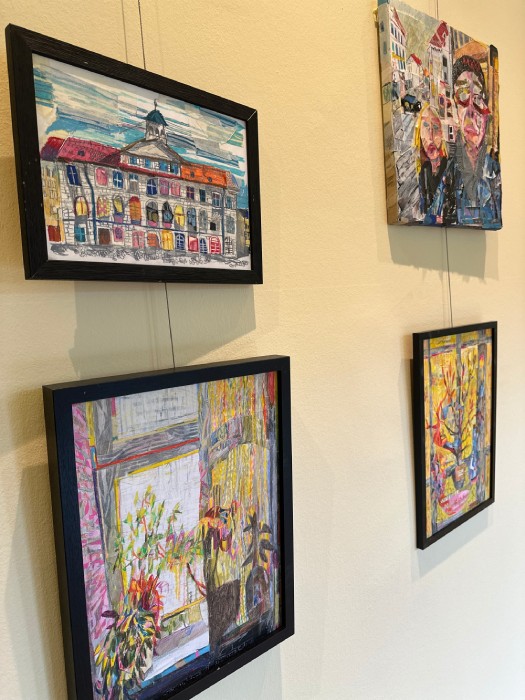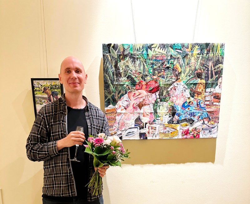 In seiner Bad-Elster-Ausstellung präsentiert der 43jährige nun ausgewählte Mixed-Media-Arbeiten aus Farbstift, Acryltuschen und Collage-Elementen. Seine Ausstellung erschafft Bildräume, in denen man die Umgebung neu entdecken kann: Egal ob in architektonischen Schätzen der Vergangenheit, in natürlichen Landschaften, in komponierter Formensprache oder in Ansichten der heutigen Moderne. Seine Kunst entsteht als gedankliche Verdichtung und als inspirierte Erkundung. Die besondere Ausdrucksform verwandelt die Galerie im Königlichen Kurhaus in einen kreativen Hotspot vielschichtiger Kunstsprache. Es werden Popart-Assoziation geweckt, doch der individuelle Anblick weitet sich zu einer spielerischen Mosaik-Fläche zwischen Zeitz-Motiven, surrealen Bildwelten und arrangierten Collage-Kompositionen, die immer wieder zum eigenen Sichtungserlebnis einladen.