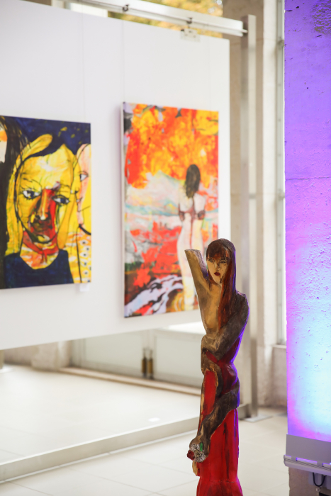 Die Plauener Künstlerin hat für ihre Retrospektive alte und neue Arbeiten aus ihrem vielfältigen Schaffen in Malerei, Grafik, Plastik, Objektkunst und Fotografie ausgewählt und in der KunstWandelhalle zu einem Gesamtkunstwerk zusammengeführt: Paare, Köpfe, Götterwesen treten dem Betrachter der Ausstellung in Grafiken, Malereien, Fotografien und Skulpturen entgegen. Selbst die Fenster werden von ihnen bevölkert, als suchten sie den Weg nach draußen. Es lässt sich nicht leugnen: Es ist immer der Mensch, der die Künstlerin treibt. Der Mensch, der antreibt, umtreibt, vertreibt, übertreibt, untertreibt, sich herumtreibt, sich treiben lässt im Strudel des Lebensquells.